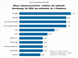 18.1.2024 (€) - Bislang sind über 50 Deklarationen für 2024 von Anbietern mit 72 Prozent Marktanteil bekannt. Bis auf sechs Ausnahmen profitieren die Kunden von einer höheren laufenden Verzinsung, auch bei vielen Marktgrößen. Wer um bis zu 1,1 Prozentpunkte erhöht hat und wer am meisten bietet.