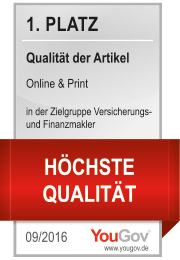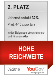 Das VersicherungsJournal Extrablatt ist laut aktueller Makler Media-Analyse des Instituts YouGov zwei Mal Sieger in den Rubriken Qualität und Informationsgehalt. Darüber hinaus wird ihm Platz 2 bei der Reichweite der vier- bis zehnmal jährlich erscheinenden Hefte bescheinigt.